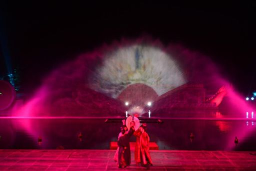 船兒緩緩接近徐園,便能聽到嗚嗚咽咽的簫聲,熙春臺上也是熱鬧,清曲彈唱《揚州月》,歌舞《二十四橋明月夜》,木偶《茉莉花》等正在上演,不得不提的是《春江花月夜》,淮揚2500余年的歷史在這演出中緩緩呈現(xiàn)。